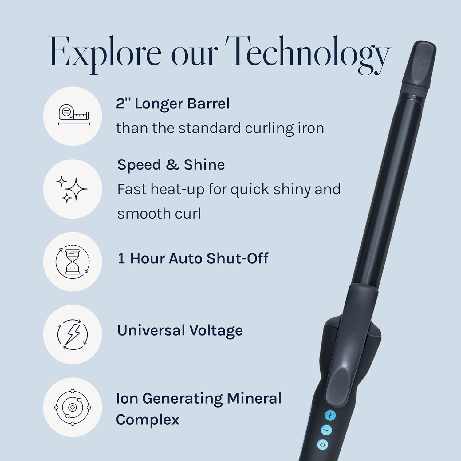 Powered by Moisturizing Heat™ and NanoIonic™ technology, the curling iron locks in moisture while evenly distributing heat throughout the hair. This helps protect the hair from excessive dryness while smoothing the cuticle to reduce frizz and enhance shine. The result is soft, polished waves that look effortless and last.