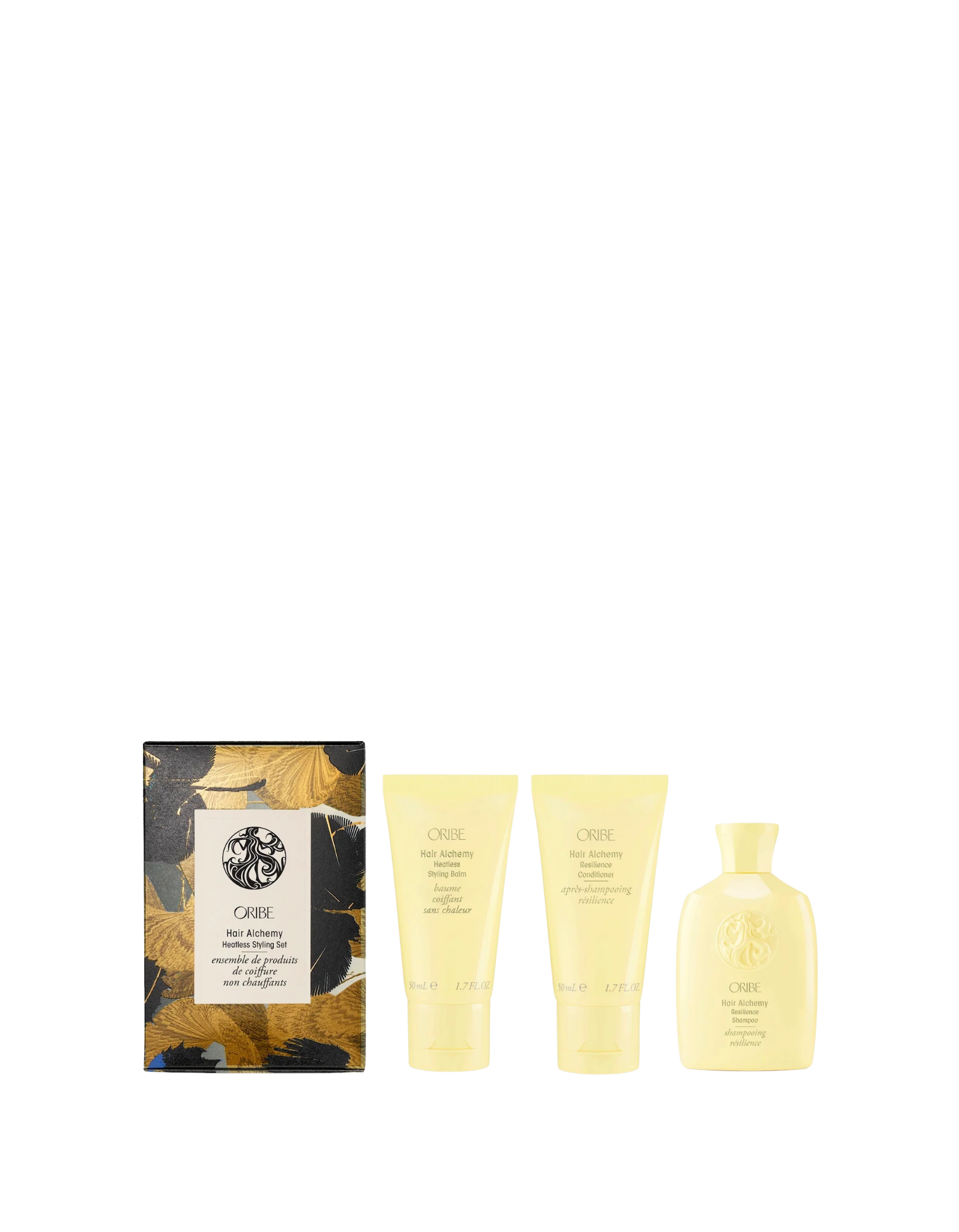 Strengthen, style, and protect with the Oribe Hair Alchemy Discovery Set, featuring travel sizes of the Hair Alchemy Resilience Shampoo, Conditioner, and Heatless Styling Balm. Together, they help fortify fragile strands, reduce breakage, and support healthier-looking length over time.